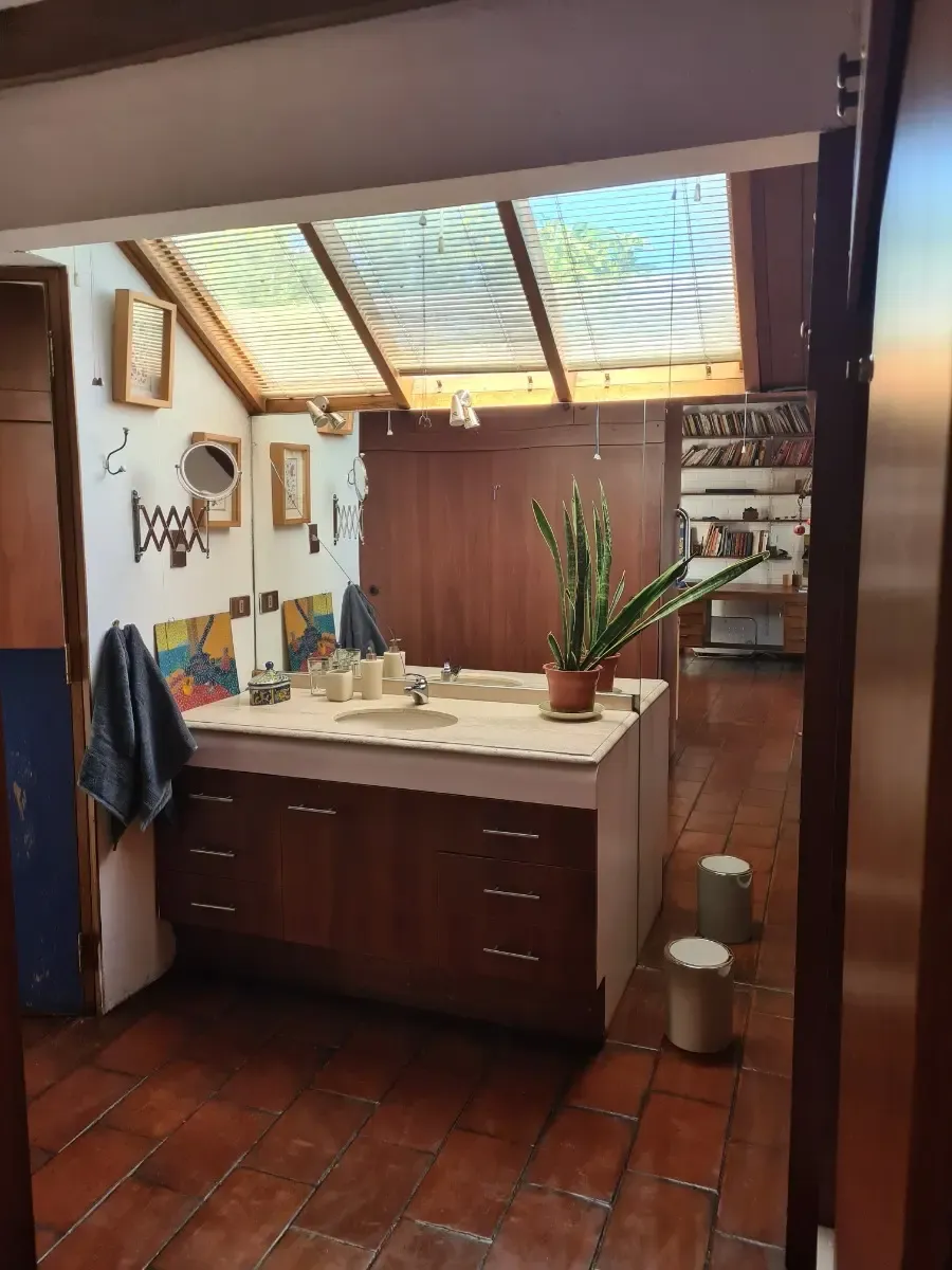 Una casa con alma propia, ubicada en lo alto del Cerro San Luis, en pleno corazón del exclusivo barrio El Golf, Las Condes. Cuenta con 4 habitaciones, 4 baños y 3 estacionamientos. Además de jardines, piscina y una vista que te abraza. Destaca por sus espectaculares vistas despejadas sobre Santiago, la exclusividad y seguridad del sector. Un privilegiado y encantador espacio. Además cuenta con una construcción separada con 2 dormitorios, 1 baño y lavadero techado.
